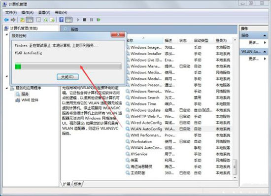 4、WLAN AutoConfig无线网络服务正在重新启动中;如图所示: