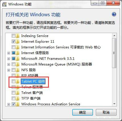 6、然后往下找到tablet pc组件,把前面的√去掉;如图所示: