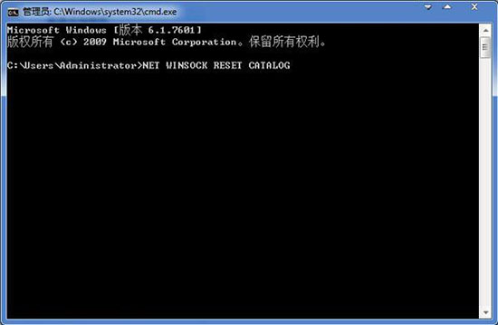 2、接着在CMD命令窗口中输入NETSH WINSOCK RESET CATALOG,然后再重新启动System Event Notification Service服务。如图所示: