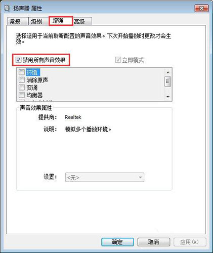 3、勾选“禁用所有声音效果”,然后点击确定即可。如图所示: