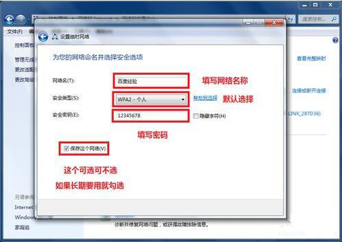 7、填写网络名称、密码;如图所示: