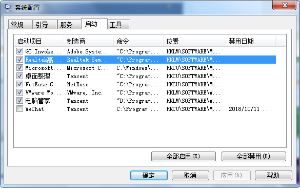 2、在跳出的“系统配置”窗口,点击切换启动选项卡,如果在启动项下有出现网址或是文件后缀名为.url、.html、.htm则将其取消掉即可,如图所示: