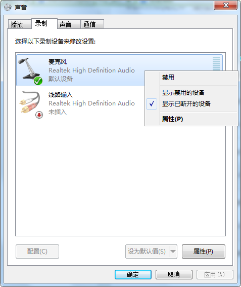 1、右击桌面右下角的声音图标,选择“录音设备”,然后将鼠标光标置于麦克风选项上,点击右键选择“属性”,如图所示;