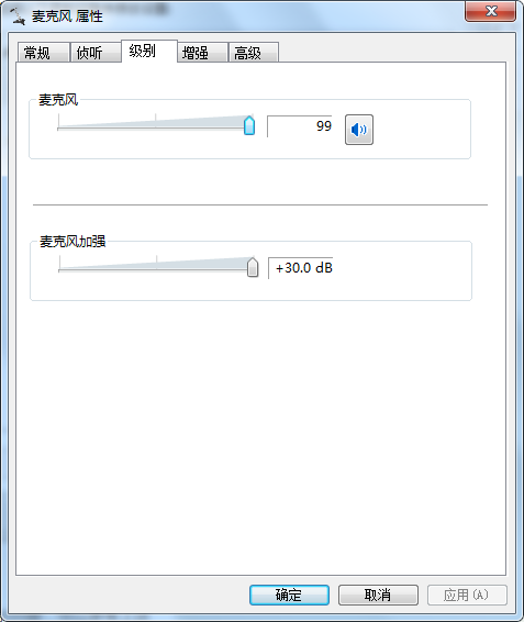 3、在“麦克风属性窗口”,将麦克风增强设置为0,如图所示;