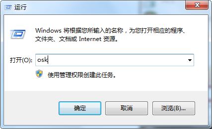 2、在运行窗口输入“osk”指令,点击“确定”,如图所示: