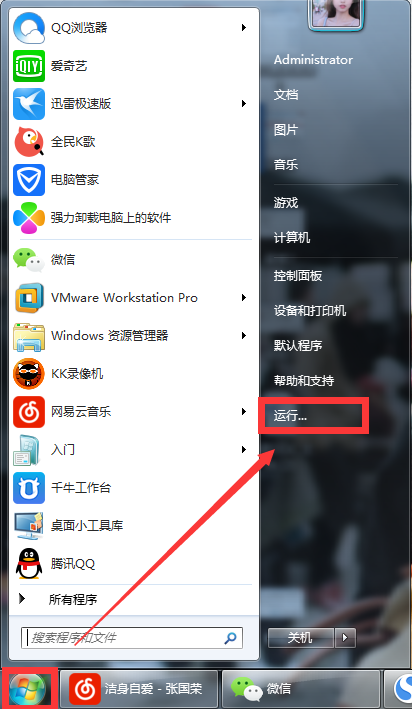 1、点击桌面左下角“开始菜单”图标,点击“运行”程序。如图所示:
