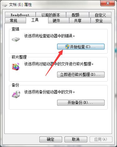 3、仅勾选【扫描并尝试恢复坏扇区】选项,点击【开始】按钮即可开始修复磁盘