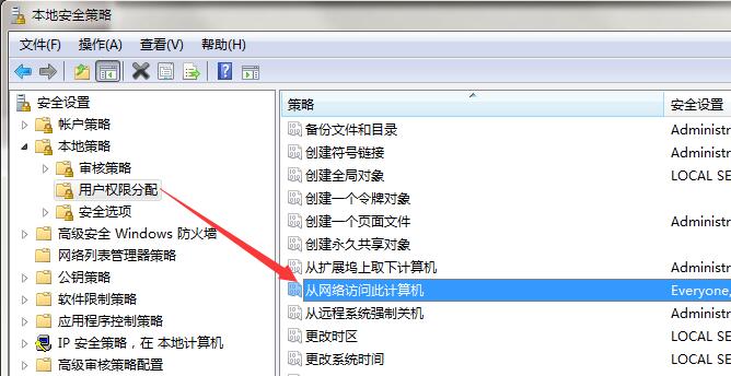 7、依次展开【安全设置-本地策略-用户权限分配】