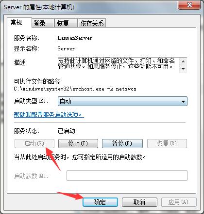 5、再次打开此服务,点击【启动】按钮启动此服务