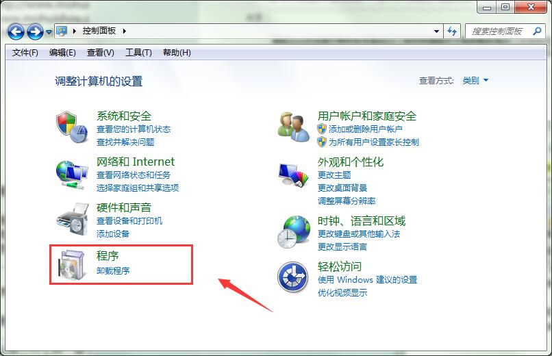 3、选择【程序】类别进入,并点击“打开或关闭Windows功能”选项