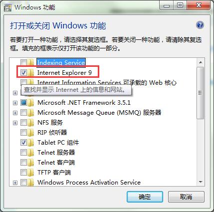 4、在Windows功能列表中,找到【Internet Explorer】选项