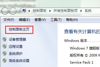 2、选择左栏菜单【控制面板主页】选项,打开控制面板