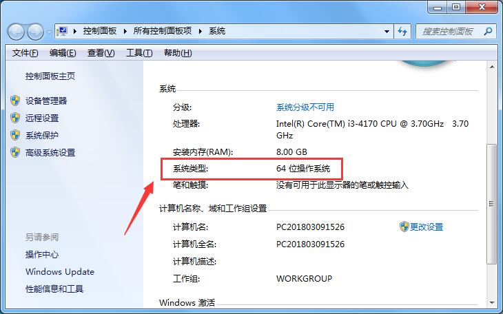 2、拖动滚动条至合适系统信息区域,查看系统类型为“64位”或是“32位”;