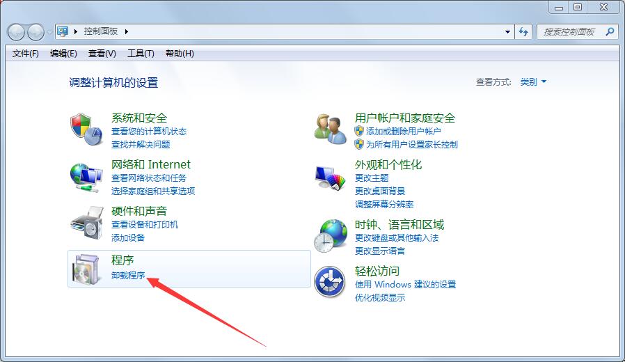 2、点击【程序】类别下“卸载程序”子选项进入;