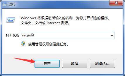 2、在弹出的新窗口中输入“regedit”命令,敲击回车打开注册表;