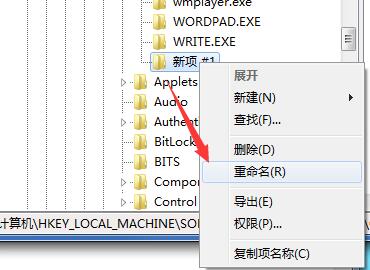 5、接着右键刚刚创建的“新项”,重新命名为“MSConfig”;