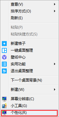 1、在桌面任意区域右击鼠标,选择打开“个性化”。如图所示:
