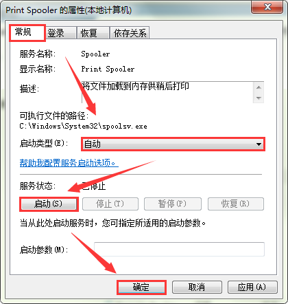 3、接下来,将常规下的启动类型修改为“自动”,再点击“启动”——“确定”。如图所示: