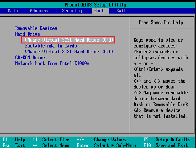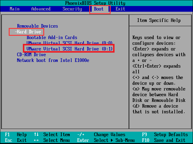 4、按“Shift”+“+”键,将“UMware Virtual SCST Hard Drive(0:1)”调到最前面;