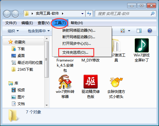 2、查看方法,点击菜单“工具”-“文件夹选项”;