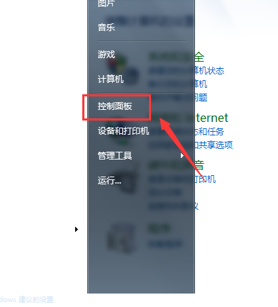 2、在弹出的下拉菜单中选择“控制面板”并点击进行下一步操作。
