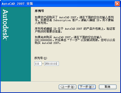 3、序列号请填写:111-20111111,一路下一步即可完成安装。