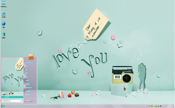 爱情给每个人的感觉都是不一样的,有时它是美好的,有时又是痛苦的,人总是不能喜欢寂寞,但爱情能够唤醒人对幸福的味觉,当岁月流逝,我们就会发现,其实爱情回忆可以是浪漫的,也许现在你不和他在一起了,但曾经在一起的回忆是美好的。该款主题桌面讲诉的就是爱情的回忆,浅色的墙上印着love you,标签上写着:many of our memories(许多我们的回忆),美好的回忆将陪你度过一生。